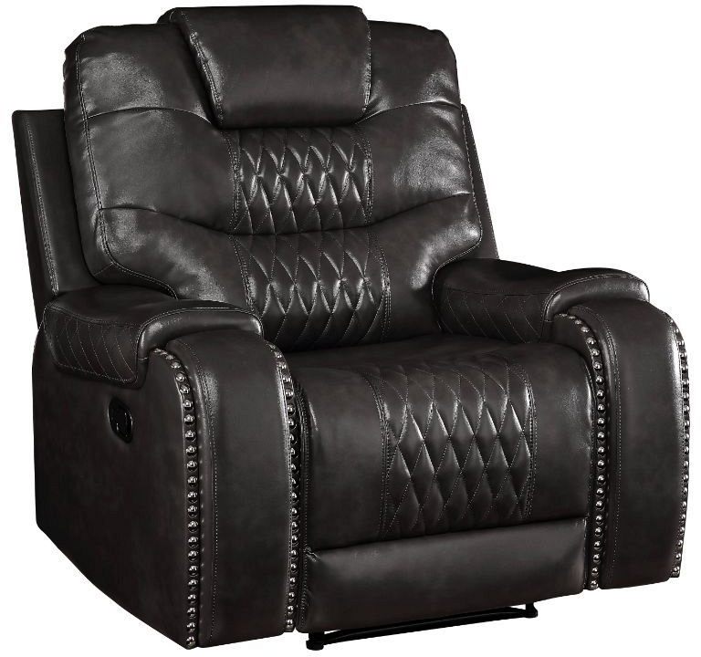 In addition, the diamond tufted pattern in the tight back and seat cushions add not only great visual interest but a sense of structure to the design. It features pillow top armrests and external latches for convenient reclining motion.