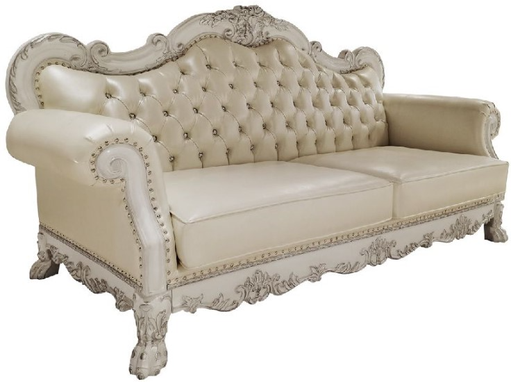 Introducing one of our most famous collections, Dresden in a new antique pearl white finish. This sofa has a classic feel, featuring decorative carvings throughout the frame, that create a classic piece. Sitting on claw feet for style and stability. It is hand-brushed with silver accents that make the carvings pop.Read More