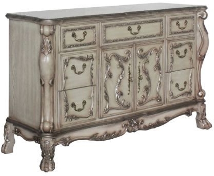 Elegant yet lightheartedly playful, this Dresden dresser is donned in an amiable vintage bone white finish with hand-applied burnish over the many layers of stains and finishes that are manually rubbed on, providing depth and character to this piece.Read More