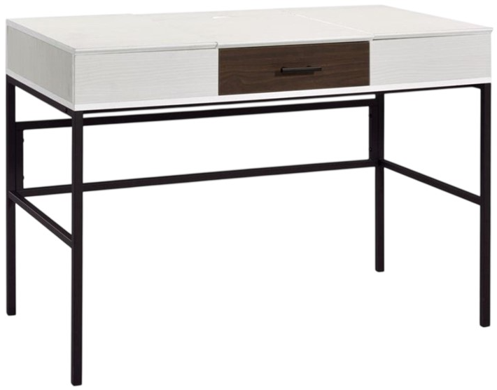 The beautiful contrast between warm wooden tone with cold metal elements delivers a bold industrial design. The writing desk has a wooden top for natural texture, softening the hard look of dark metal frame. The unique hinged top flips up to reveal two spacious interior storage compartments.Read More