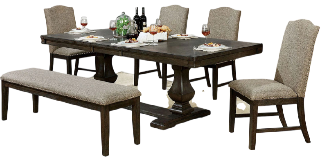 Set Includes : Dining Table (CM3310T); Dining Bench (CM3310BN); (2) Dining Chair Sets (CM3310SC)
